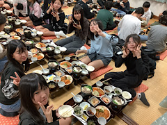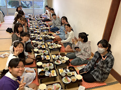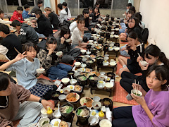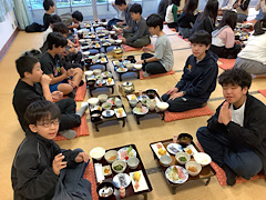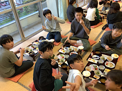 おかわりをする児童もたくさんいました。大盛り上がりの夕食でした。