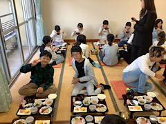 全員で元気よくお礼を言った後に、いただきますです。