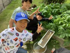 夏の猛暑のせいか昨年度よりも収穫は少なめです。それでも立派なさつまいもがたくさん収穫でき、のぞみ学級の子どもたちもはりきっていました。