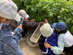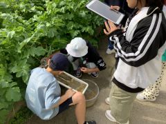 プランターの砂が、水を流すとどのように削れていくかをグループで協力して観察しました。写真や動画を撮影して記録を残していきます。