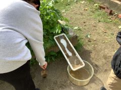 プランターの砂が、水を流すとどのように削れていくかをグループで協力して観察しました。写真や動画を撮影して記録を残していきます。