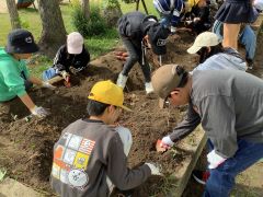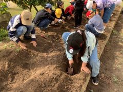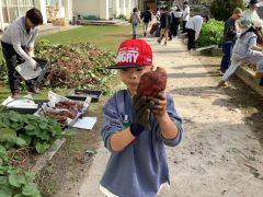 夏の猛暑のせいか昨年度よりも収穫は少なめです。それでも立派なさつまいもがたくさん収穫でき、のぞみ学級の子どもたちもはりきっていました。
